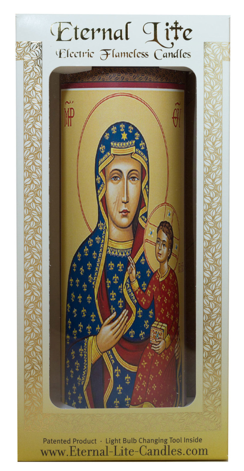 The origin of this miraculous image in Czestochowa, according to tradition the painting was a portrait of Our Lady done by St. John sometime after the Crucifixion of Our Lord. Today, the Polish people continue to honor their beloved portrait of the Madonna and Child, especially on August 26. Prayer to Our Lady of Czestochowa on reverse side.