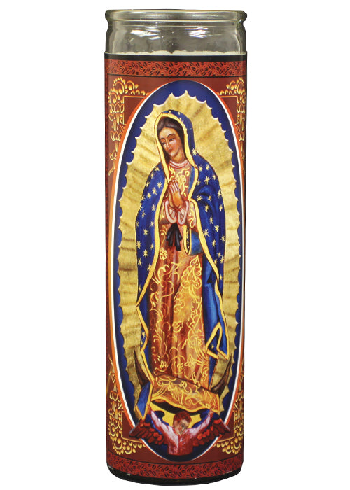 She appears as a native princess to him. This candle has a hand painted image from a Colorado artist in the traditional iconography style. Our Lady of Guadalupe Prayer on the reverse side in English and in Spanish.